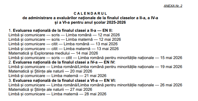 Evaluare Națională 2026 admin 29.01.2014 Evaluare Națională 20262025-10-20T12:52:42+02:00 EVALUARE NAȚIONALĂ – CLASA a VIII-a EVALUARE NAȚIONALĂ – clasele II, IV, VI – 2026